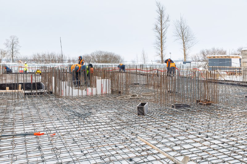 Корпус 1: устройство стен 1-го этажа, завершение перекрытий подвала