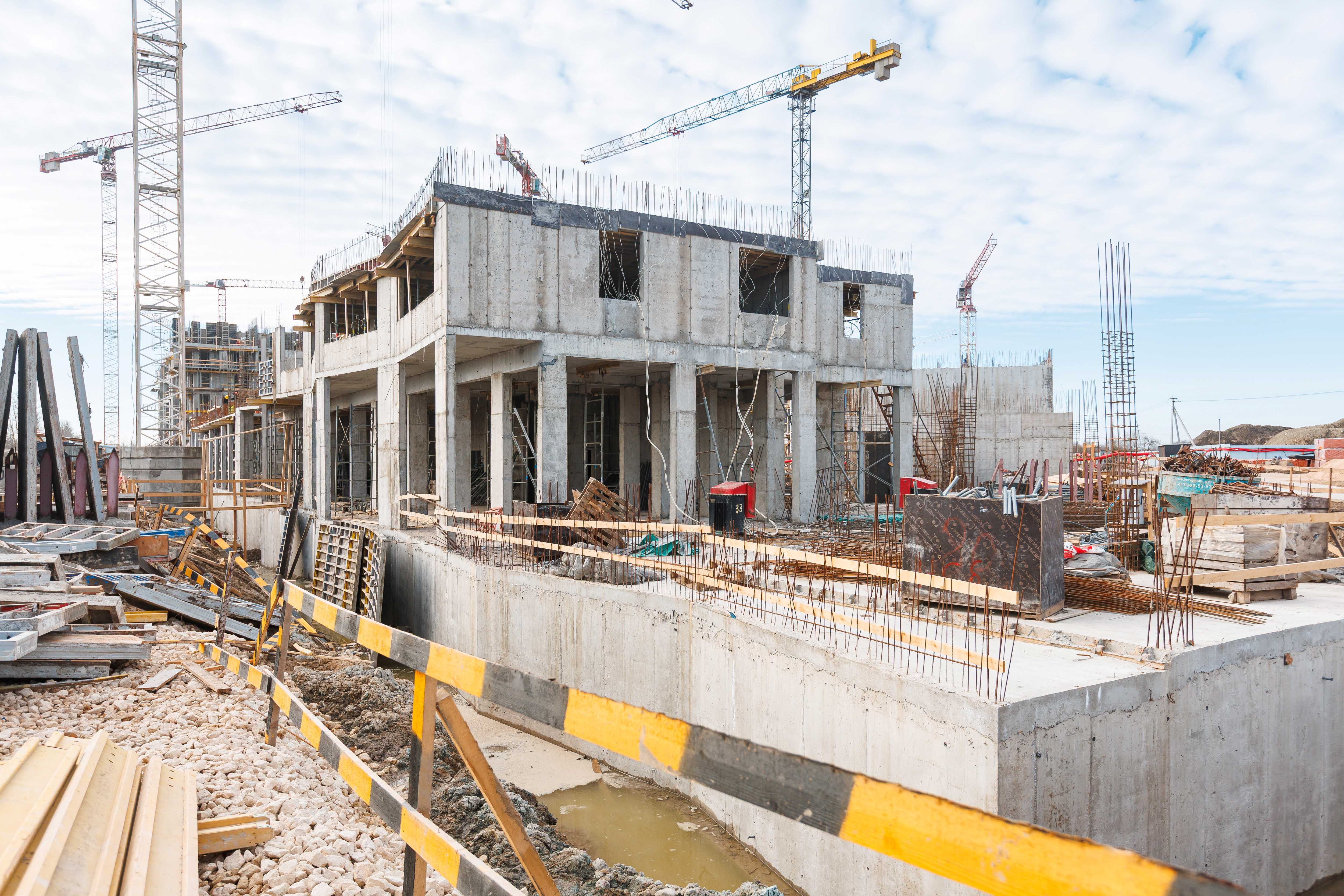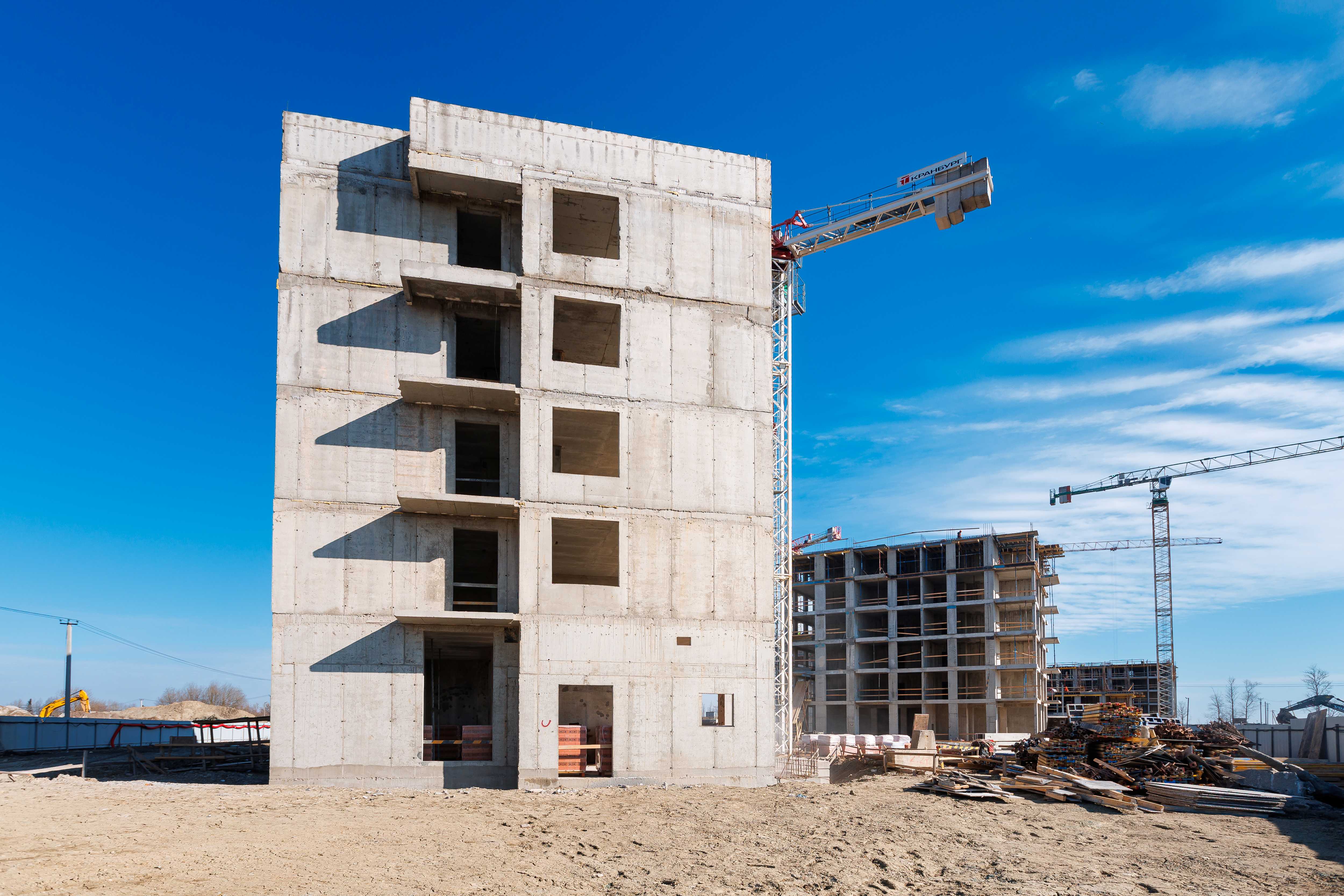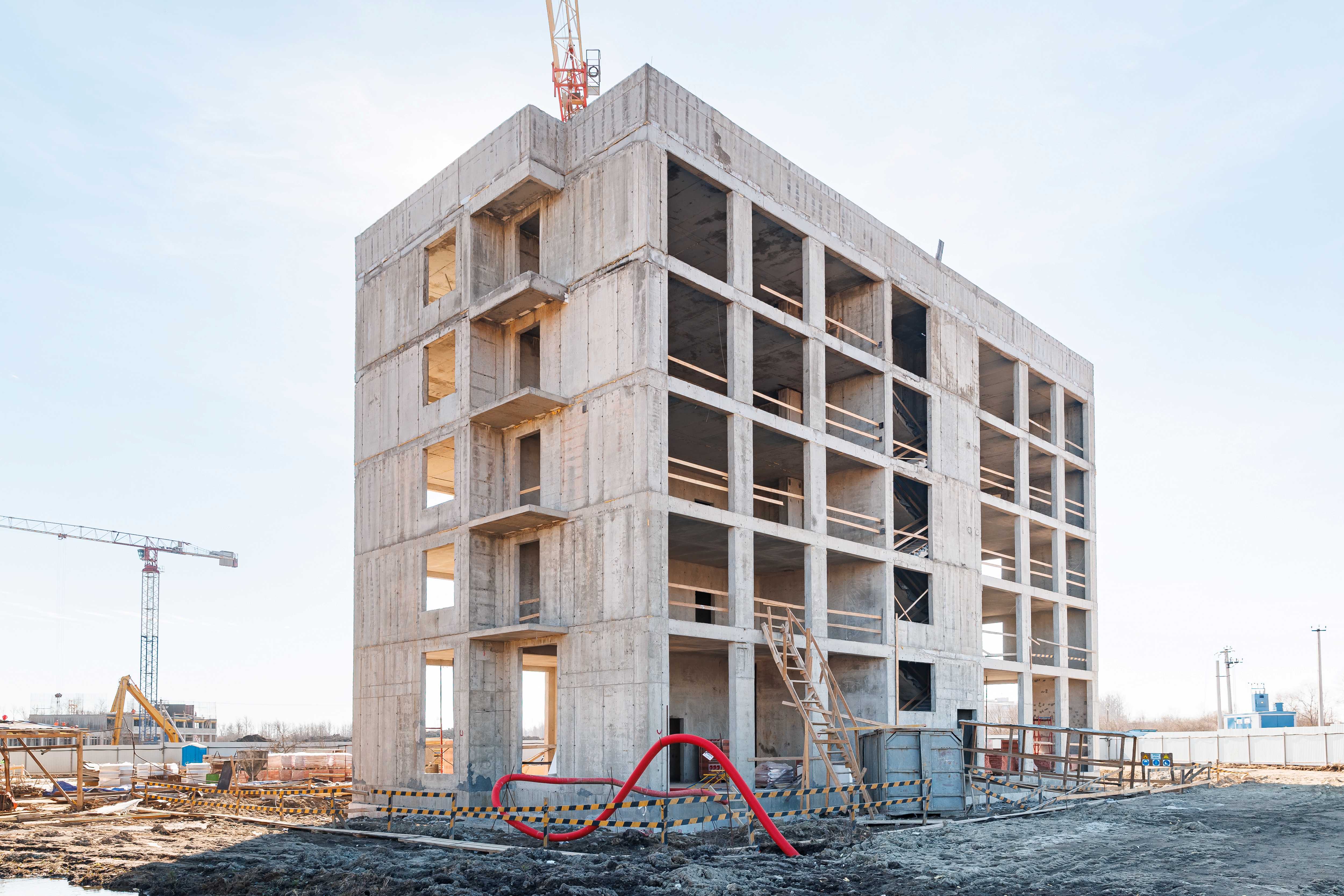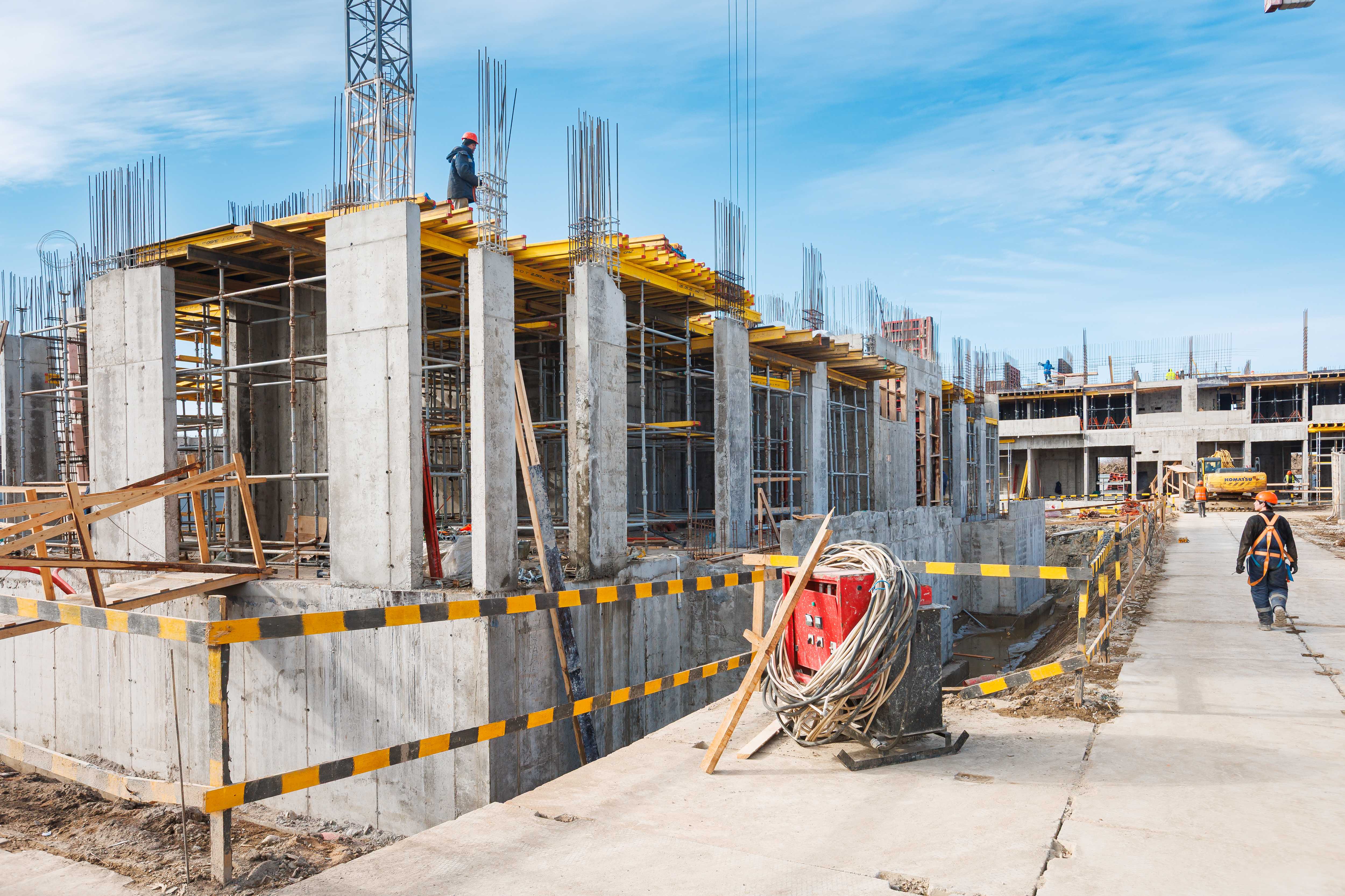 Корпус 1: устройство стен и перекрытий 1-2-го этажей, начало работ по устройству стен 3-го этажа.