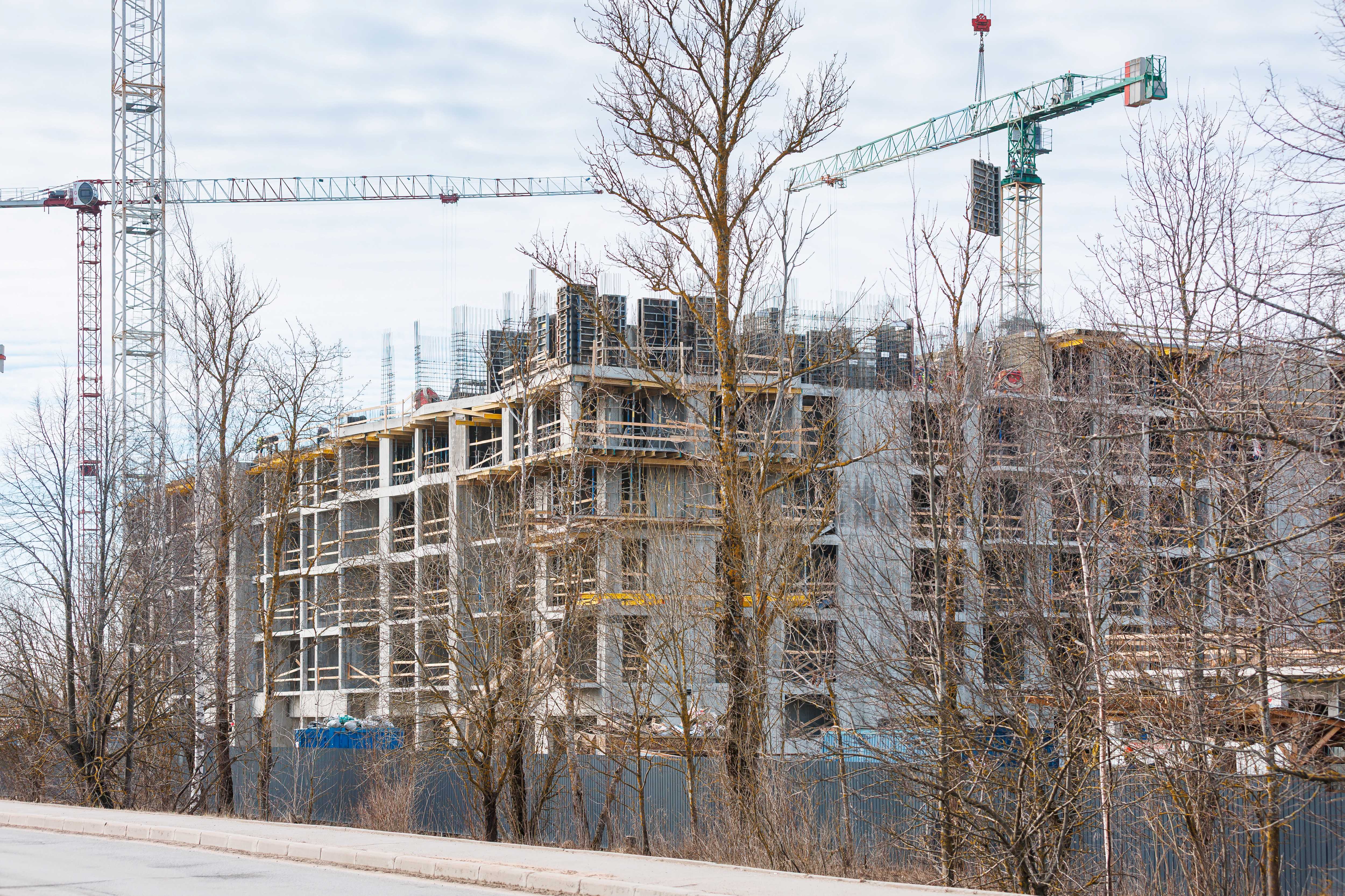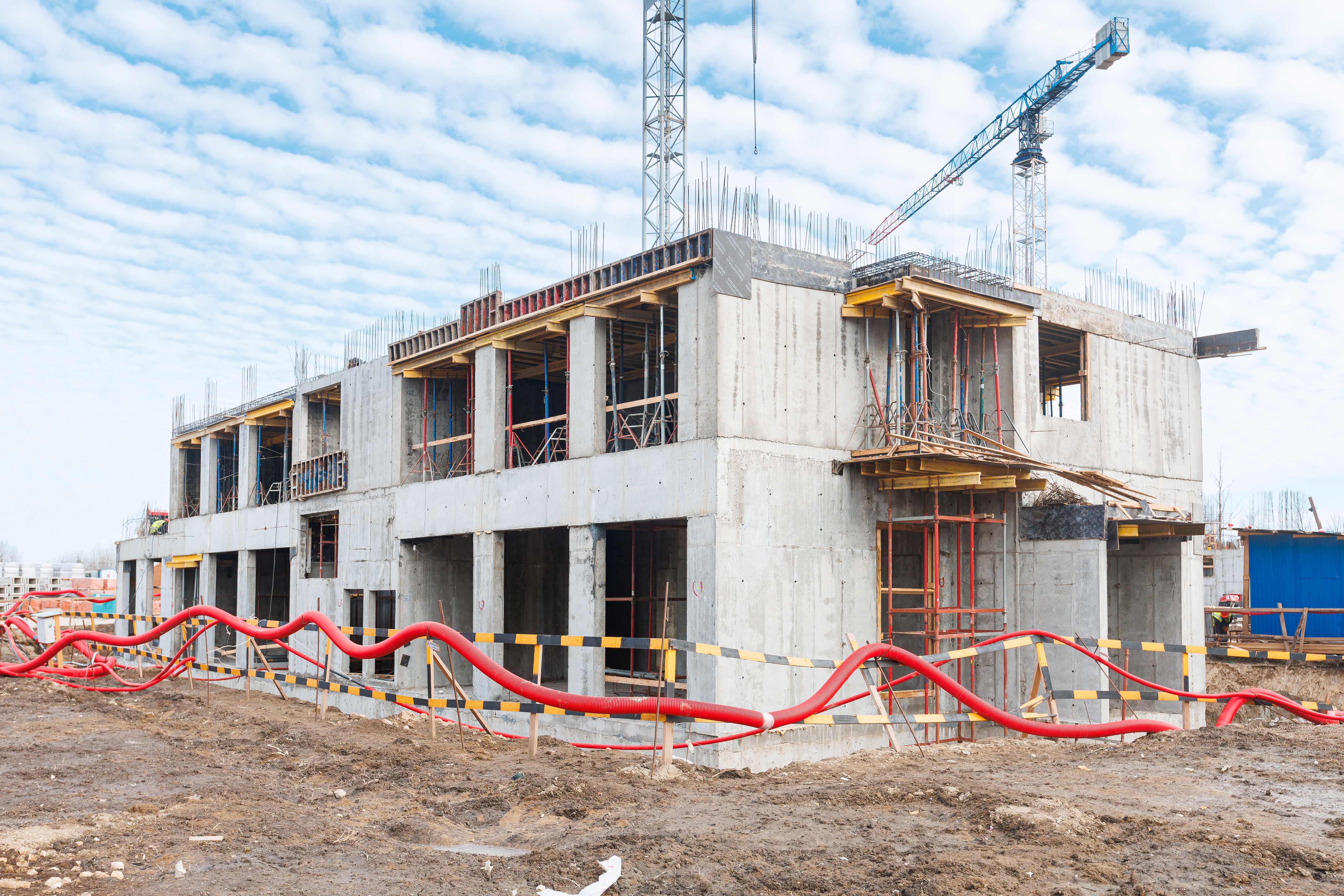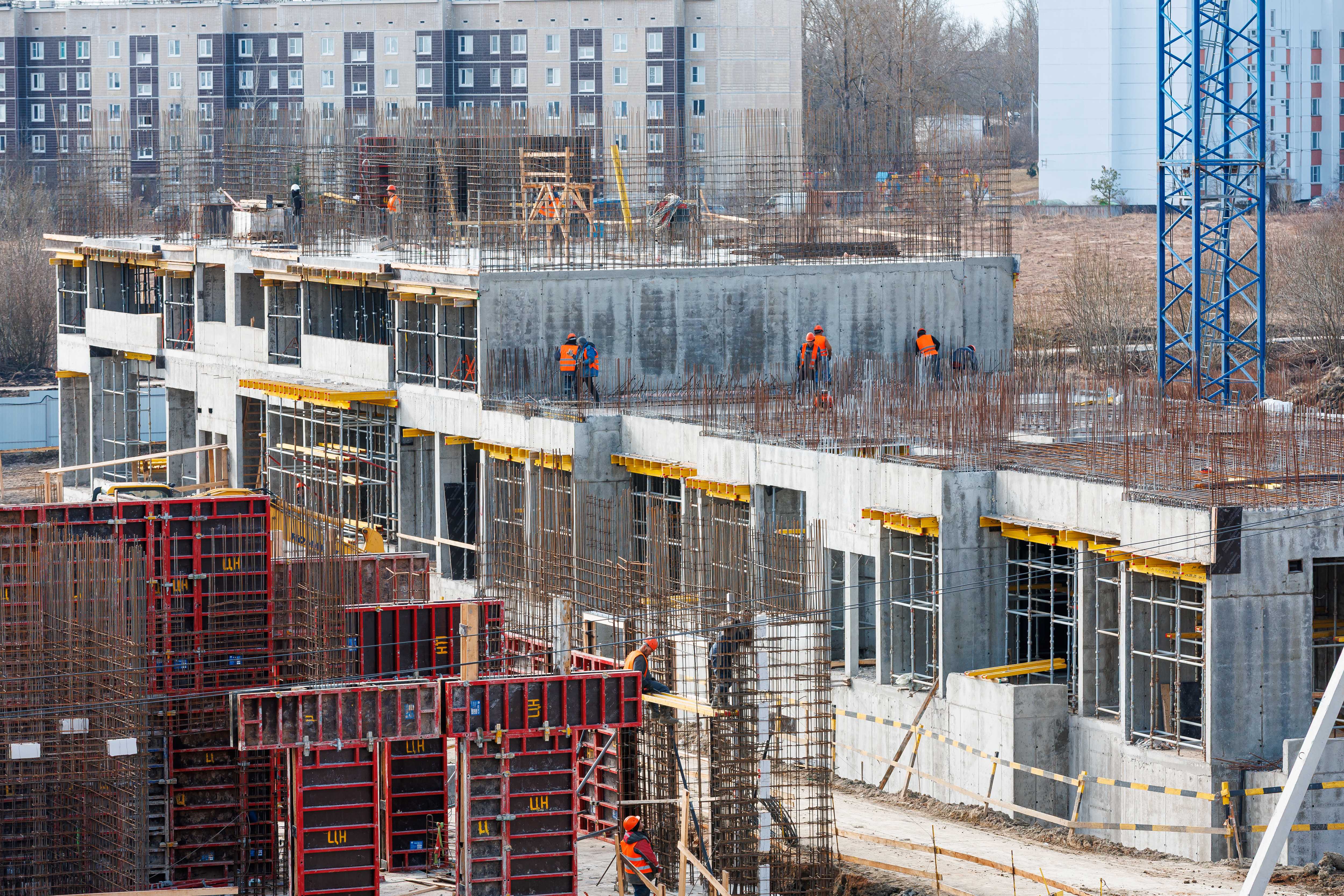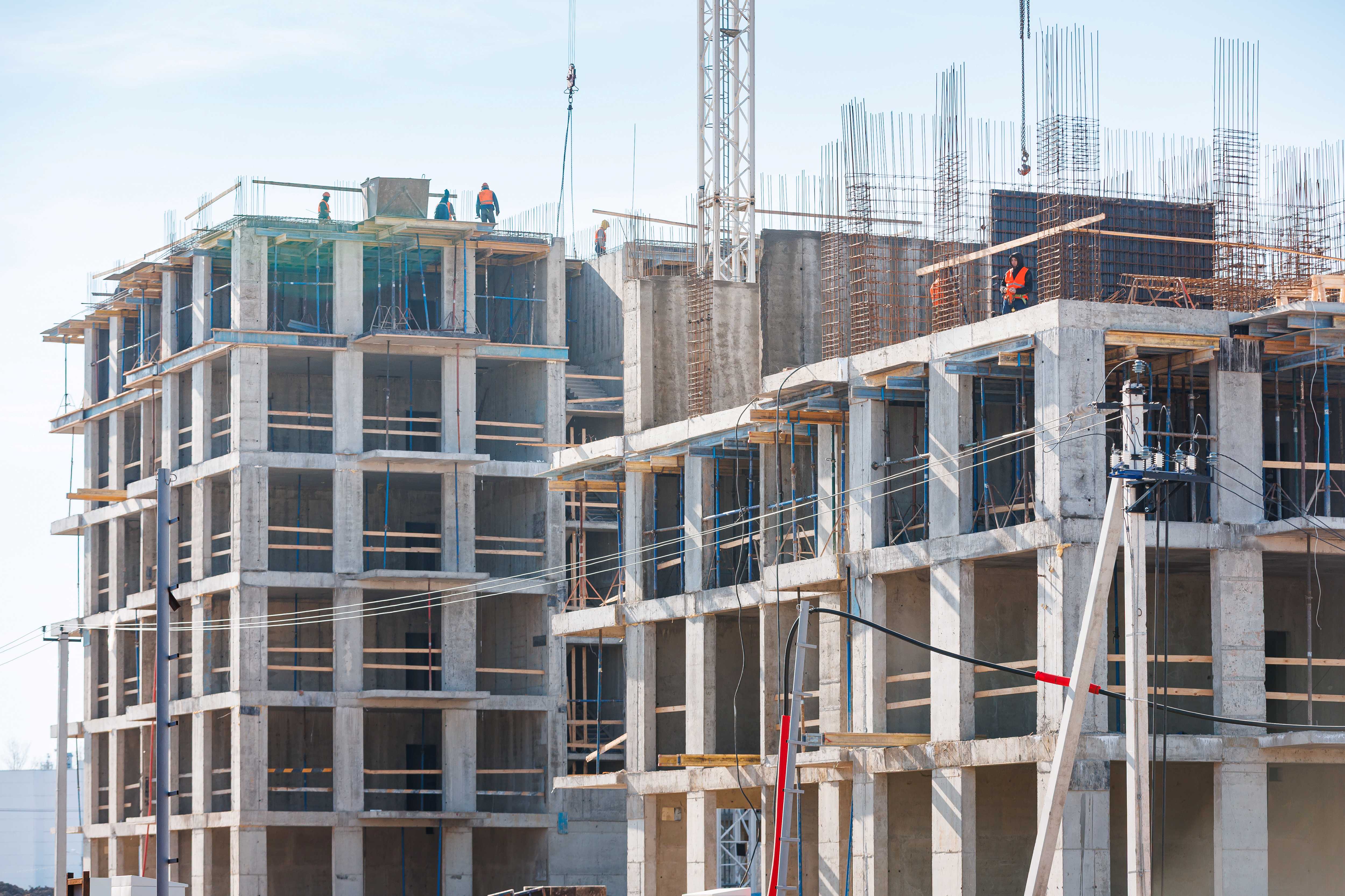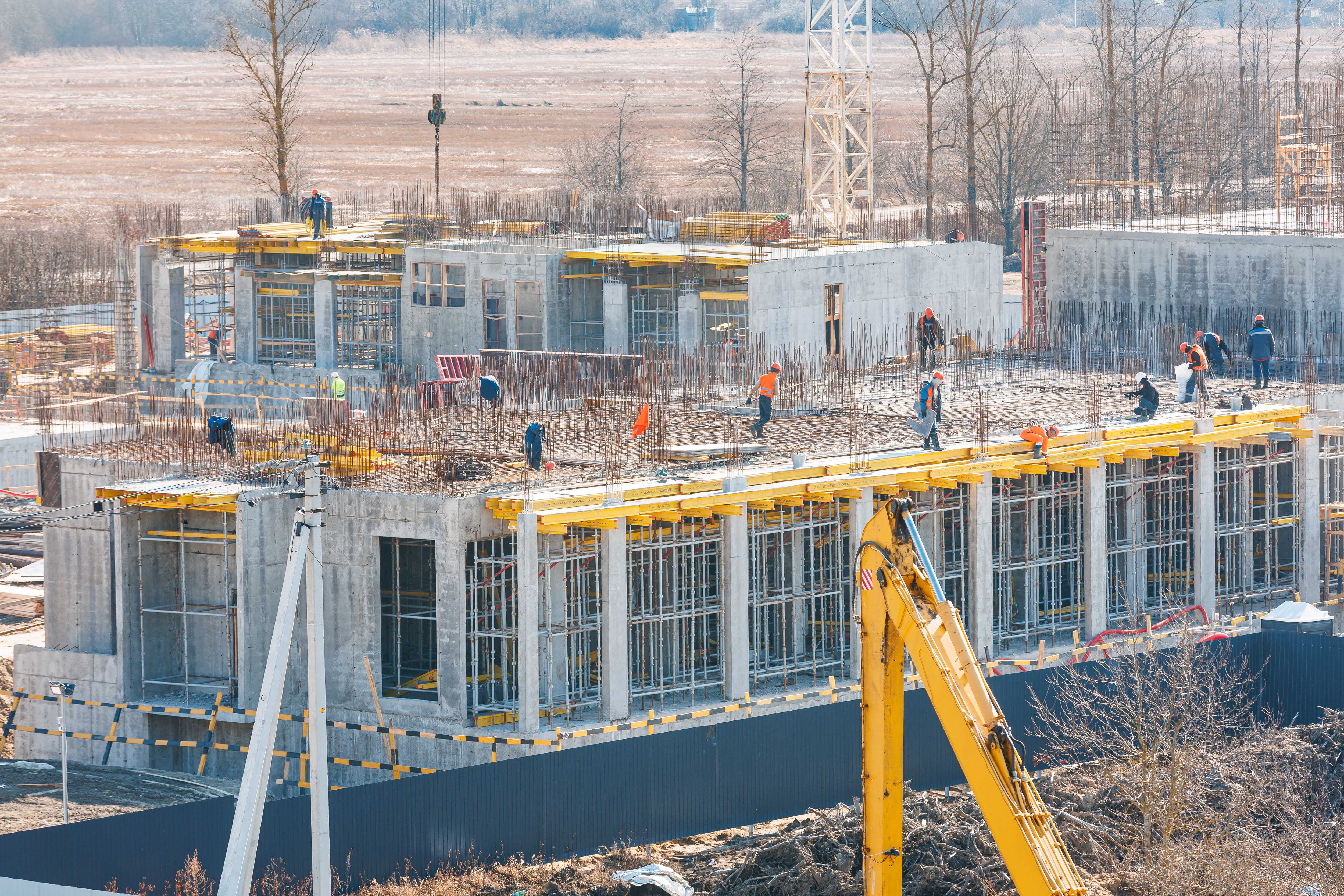 Корпус 1: устройство стен и перекрытий 1-2-го этажей, начало работ по устройству стен 3-го этажа.