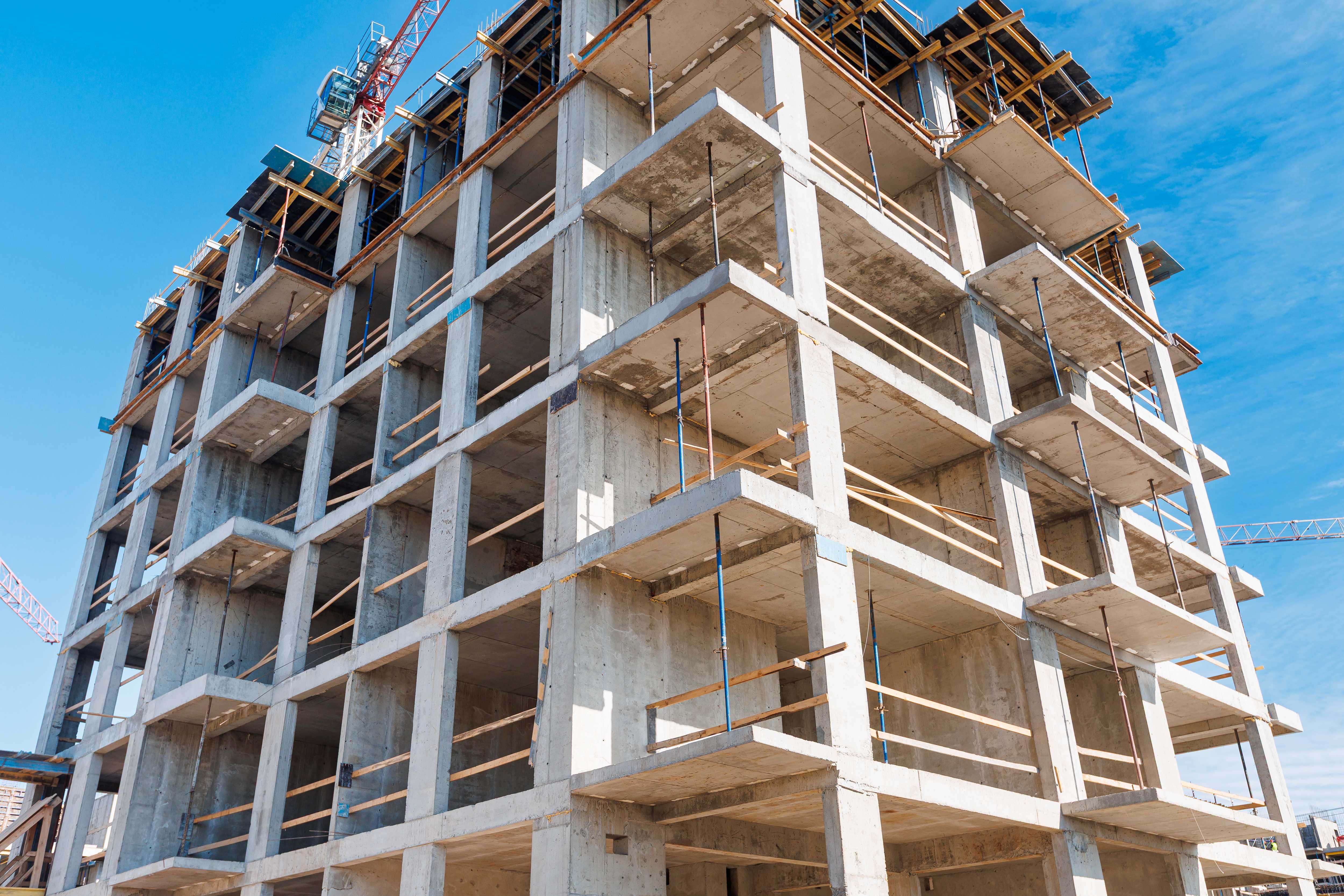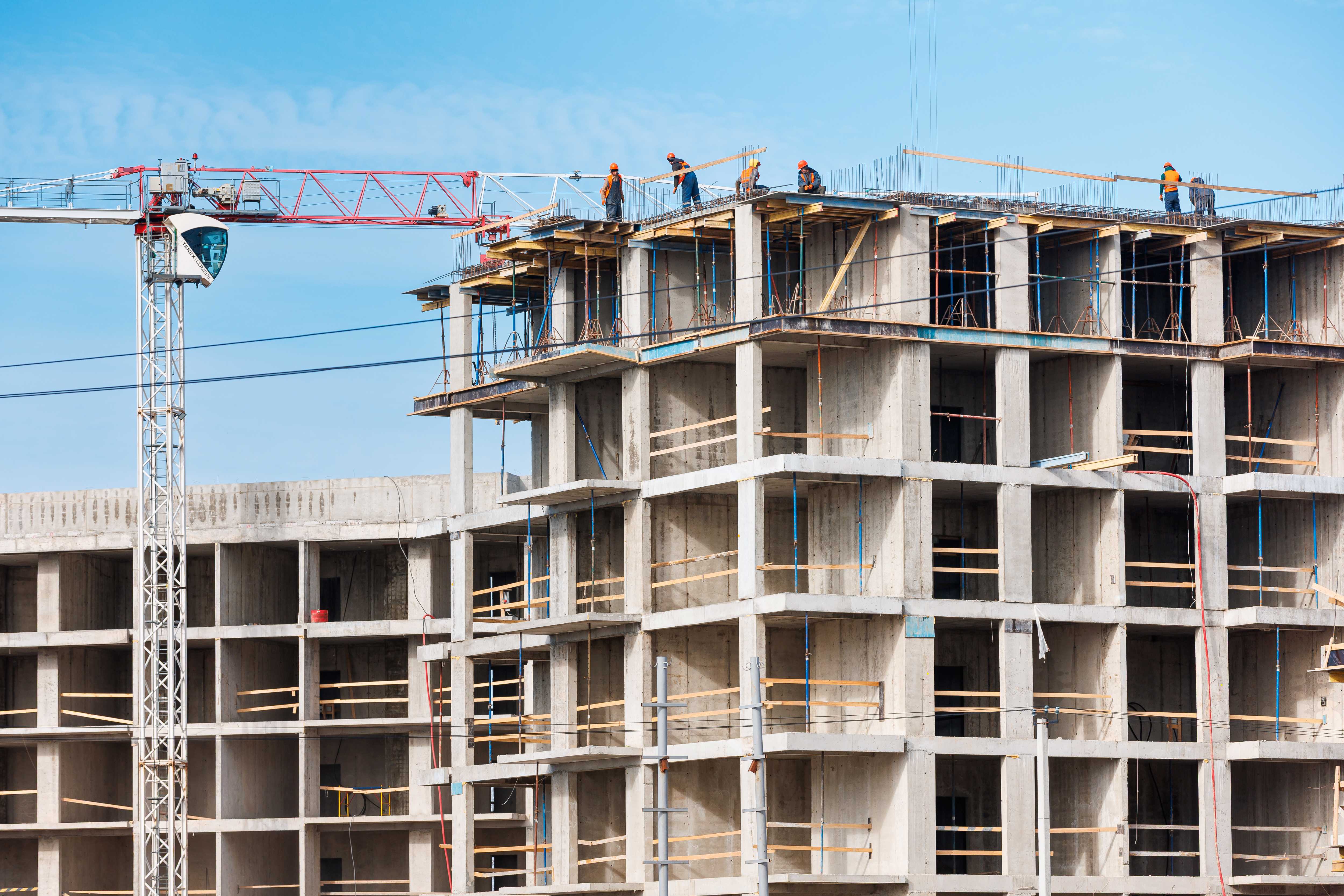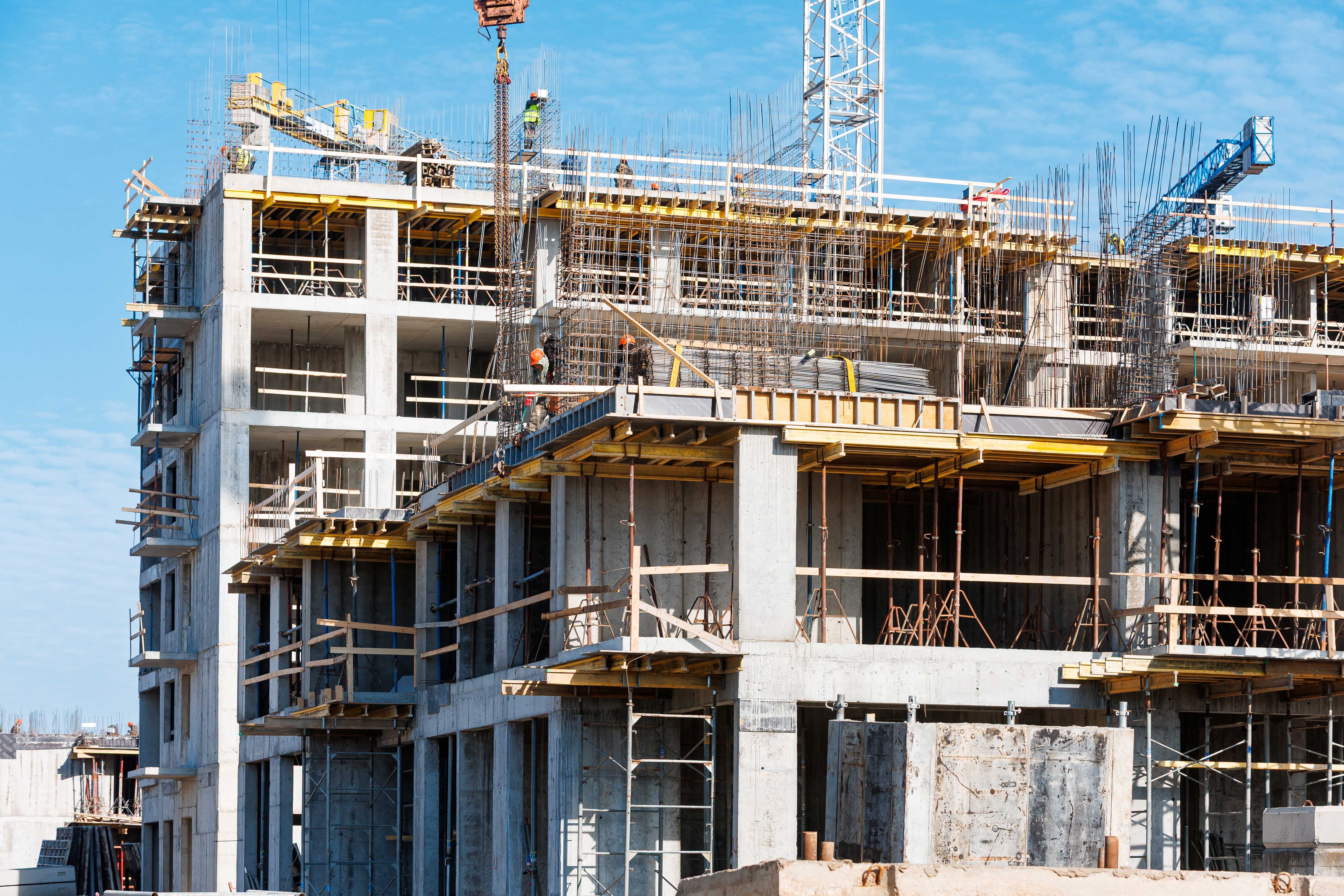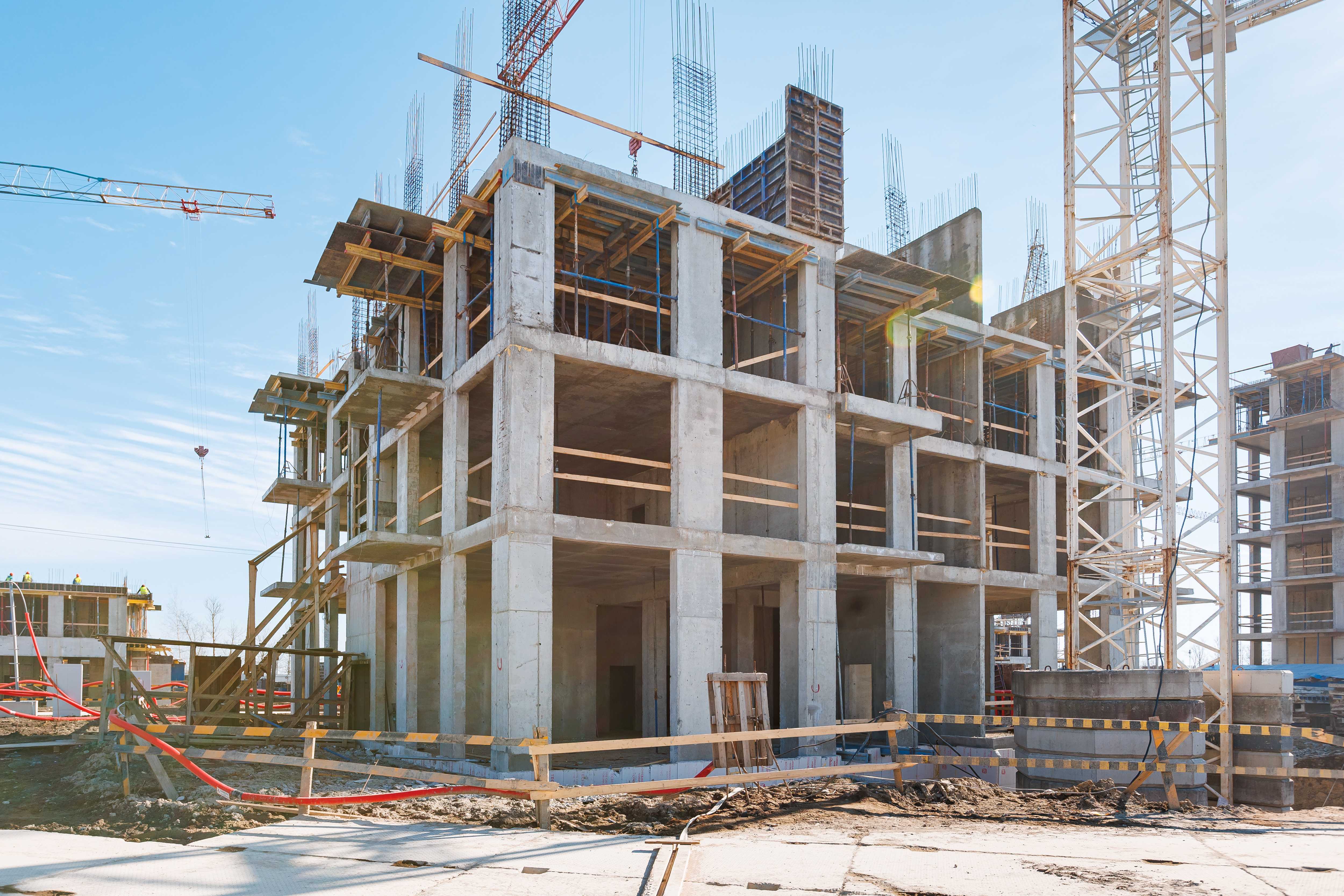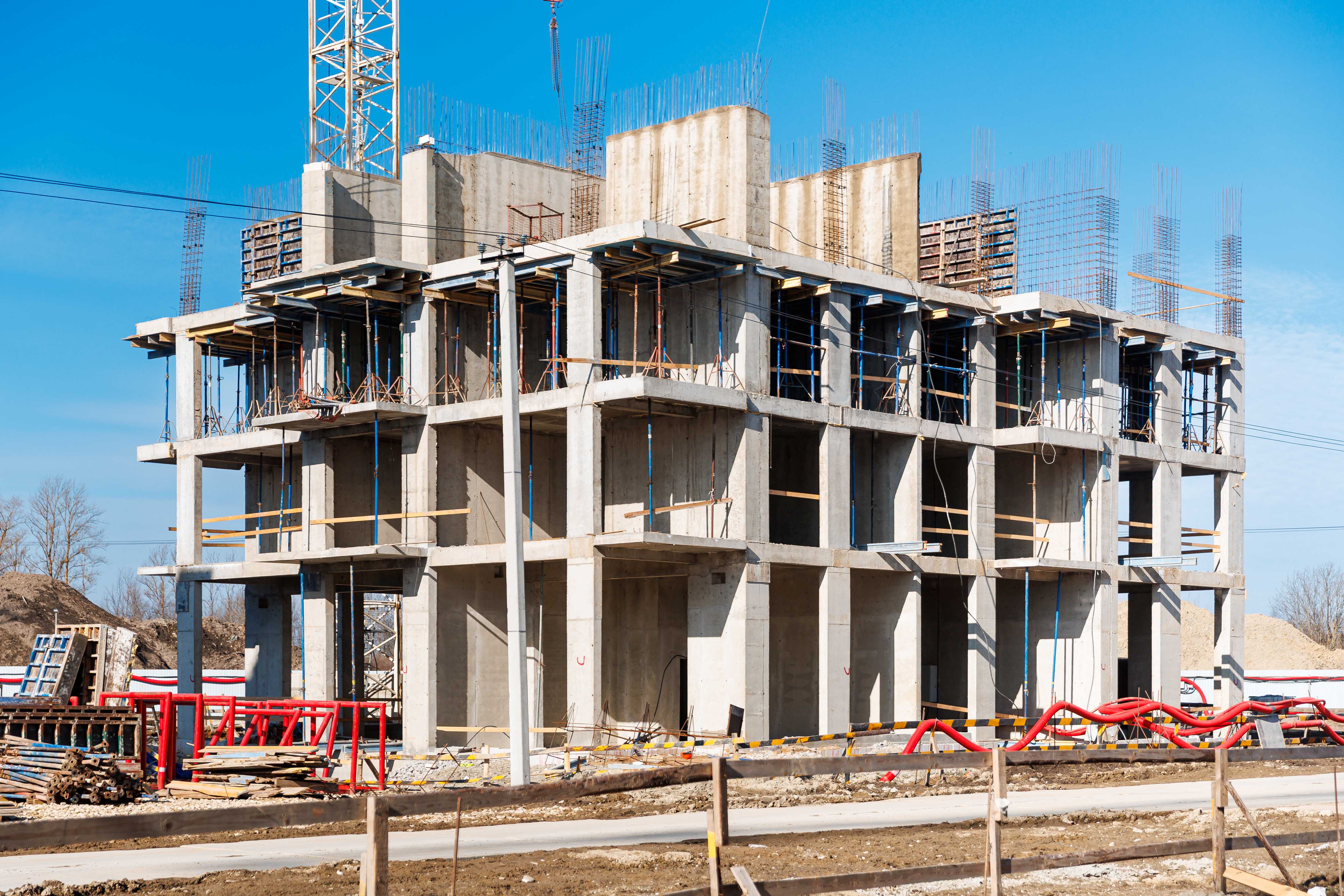 Корпус 1: устройство стен и перекрытий 1-2-го этажей, начало работ по устройству стен 3-го этажа.